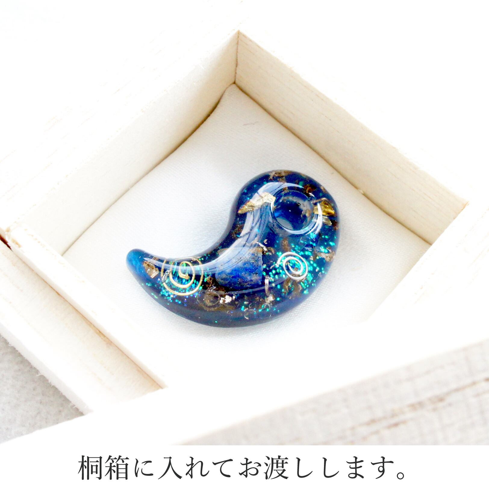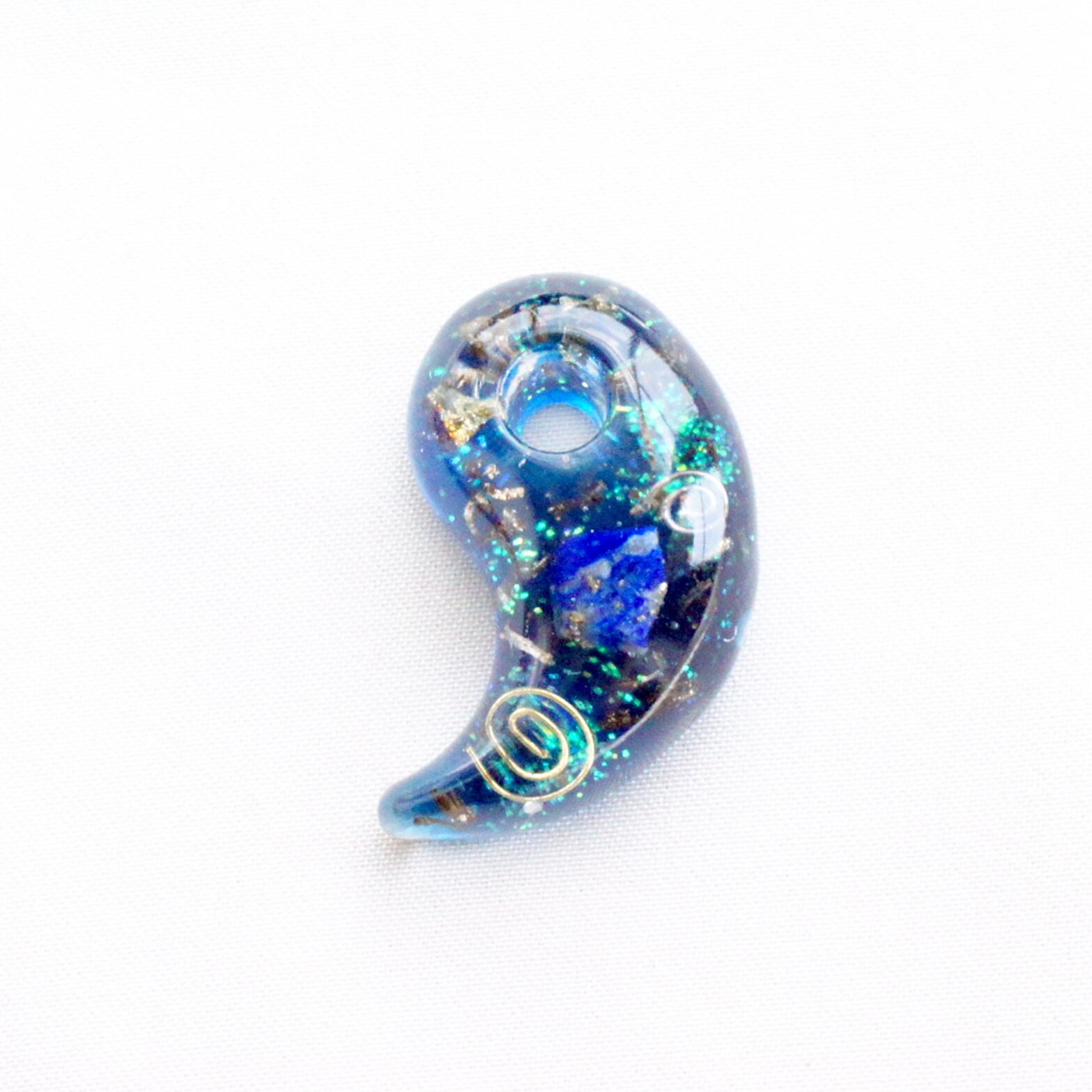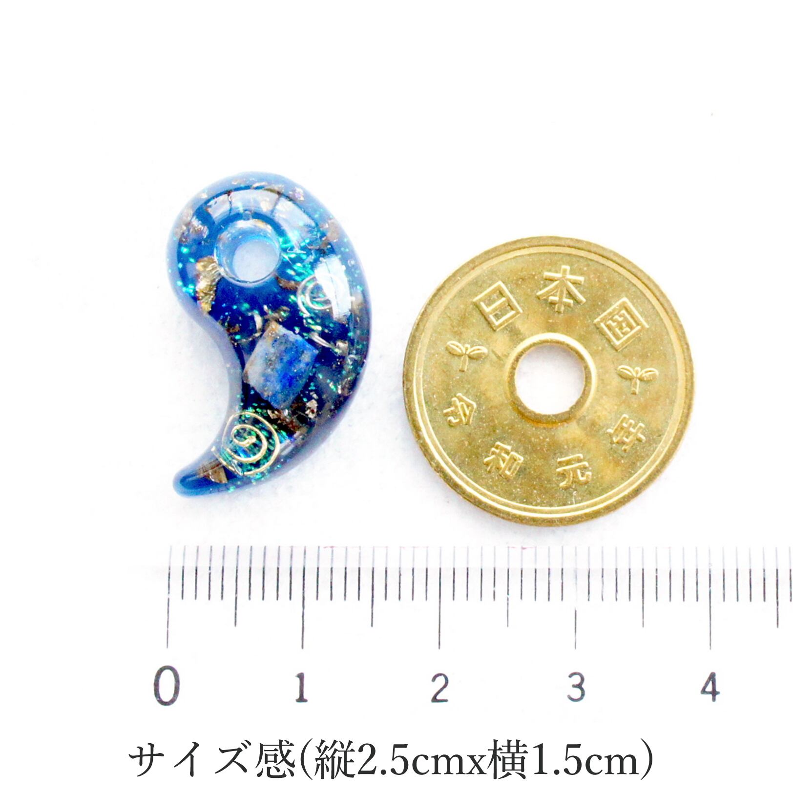 縦2.5cmx横1.5cmのオルゴナイト勾玉アクセサリー。