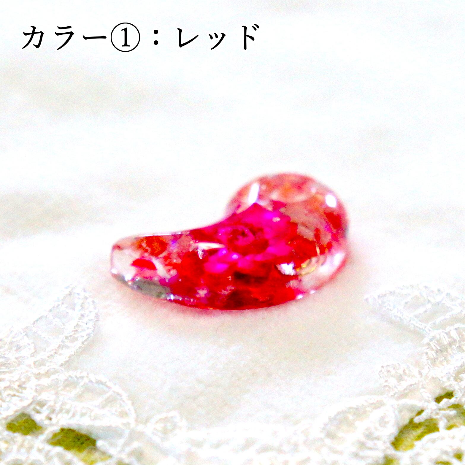 縦2.5cmx横1.5cmのオルゴナイト勾玉アクセサリー。