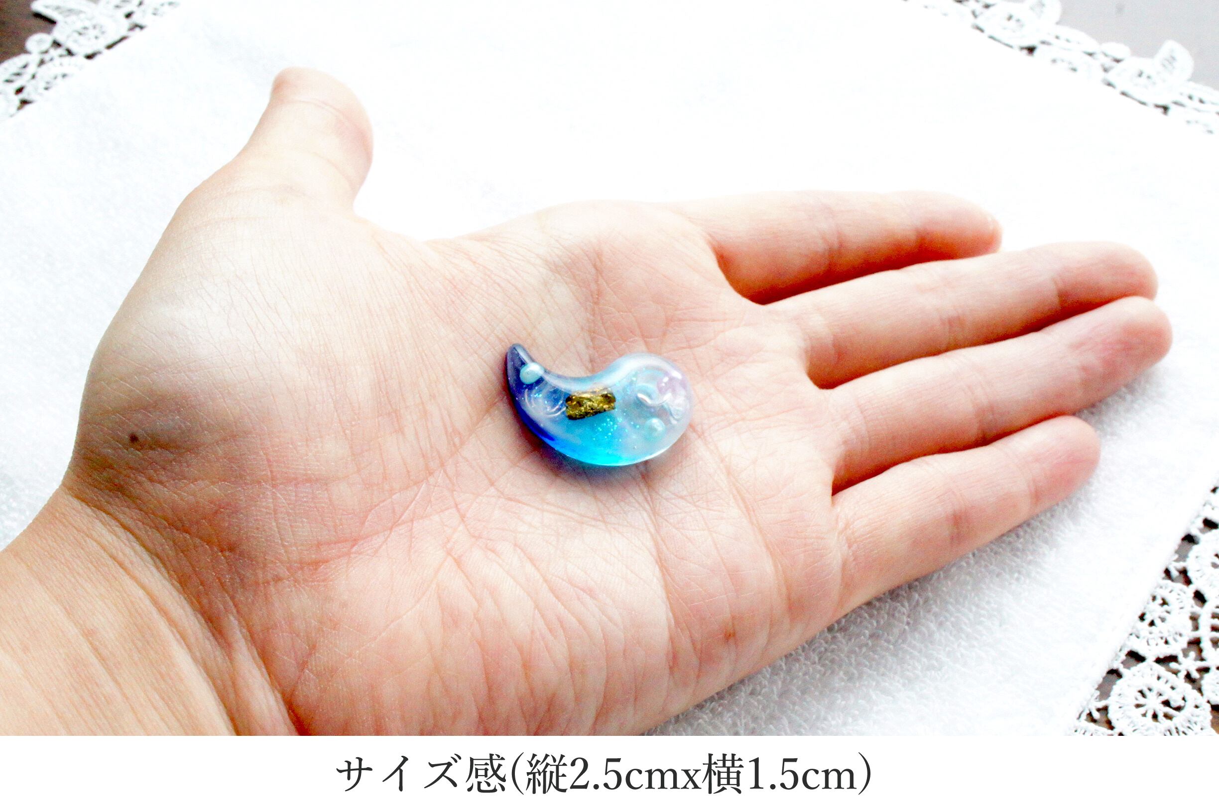 縦2.5cmx横1.5cmのオルゴナイト勾玉アクセサリー。