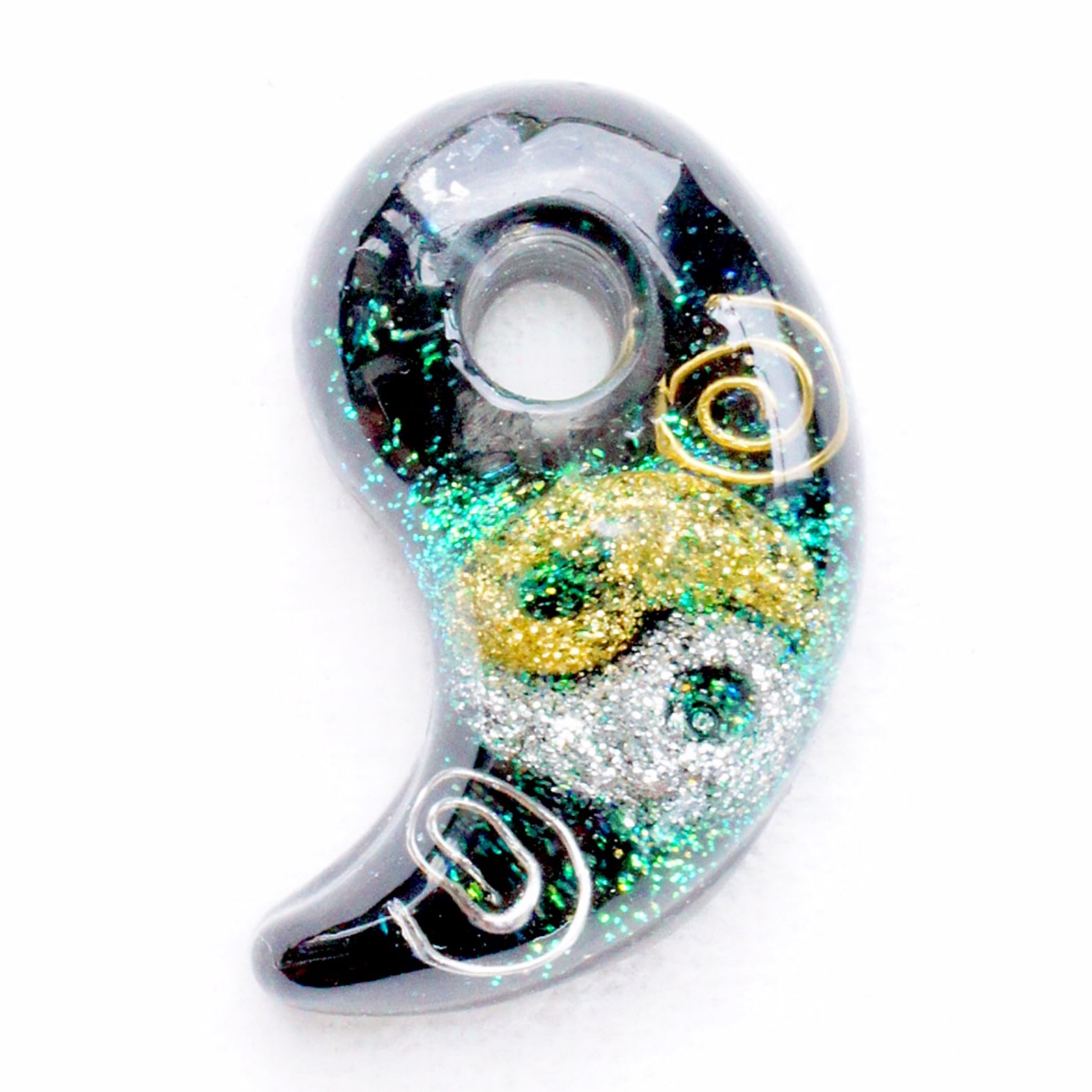 縦4cmx横2.5cmのオルゴナイト勾玉アクセサリー。
