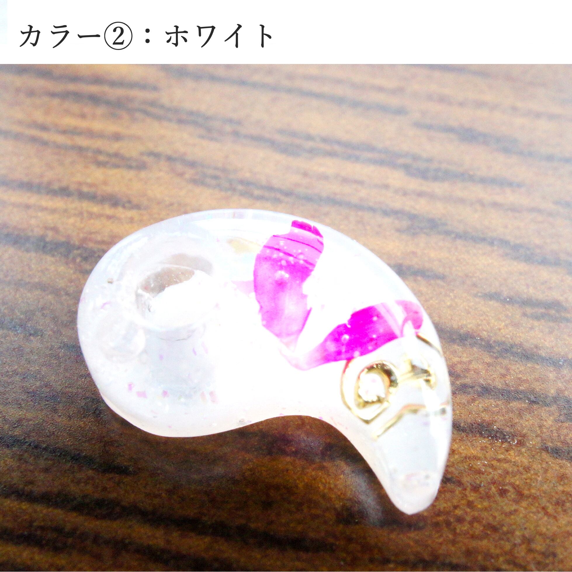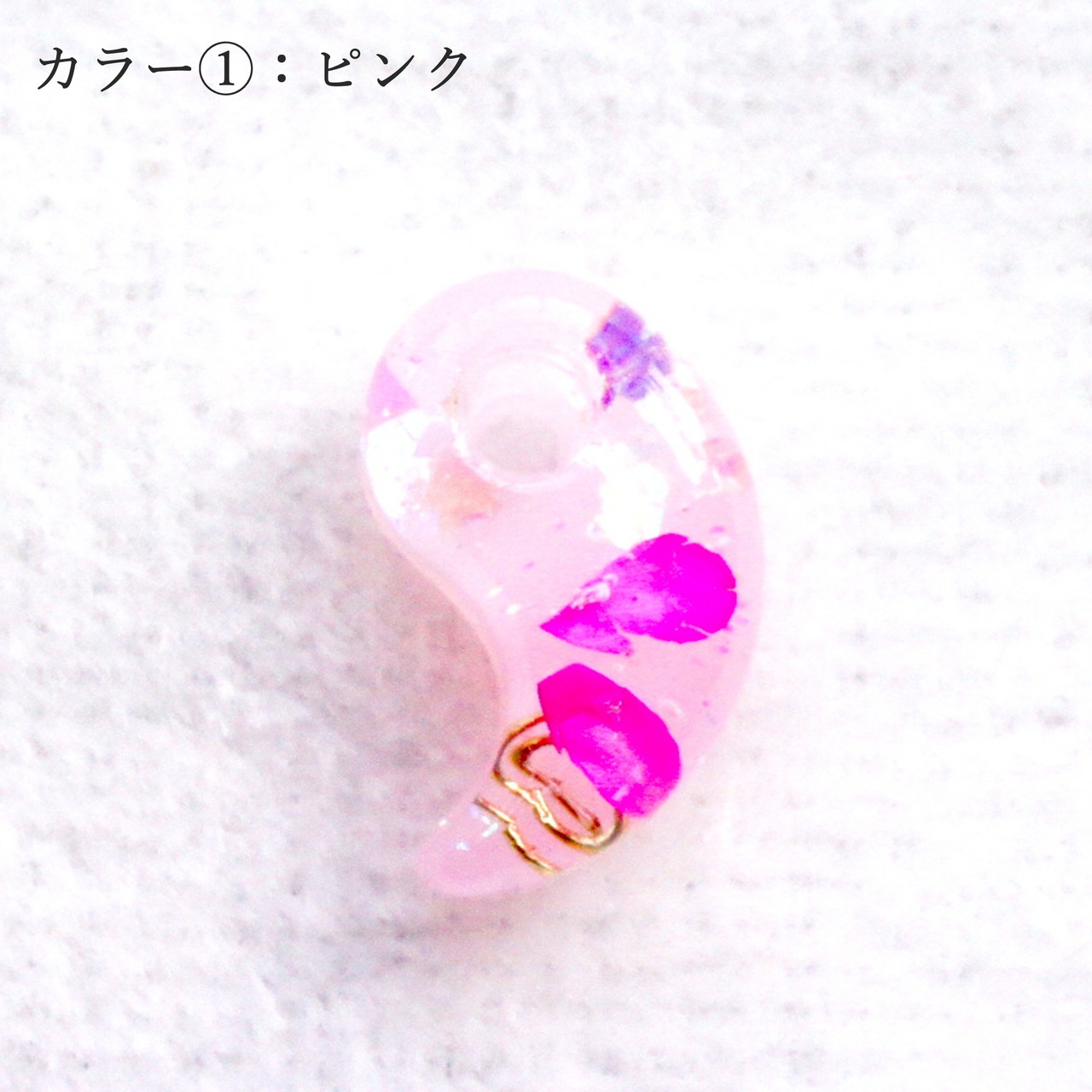縦1.5cmx横1.0cmのオルゴナイト勾玉アクセサリー。