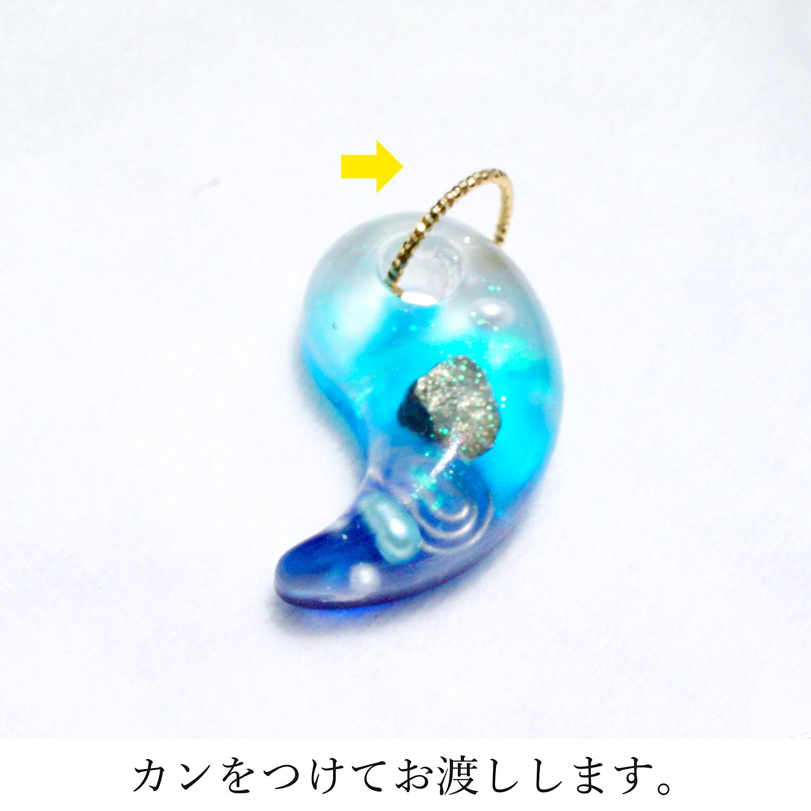 縦4cmx横2.5cmのオルゴナイト勾玉アクセサリー。